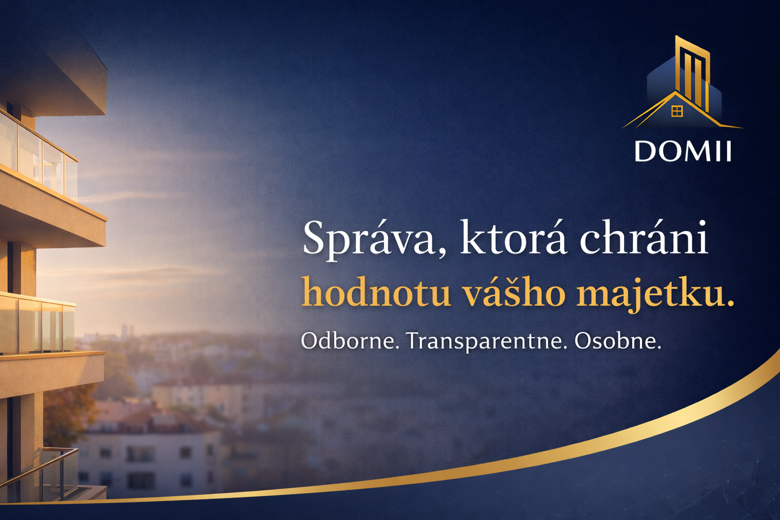 Vitajte v DOMII - profesionálnej spoločnosti zameranej na správu nehnuteľností. Sme tu pre Vás, aby sme Vám zabezpečili bezstarostné a efektívne spravovanie Vašich bytov, bytových domov a nebytových priestorov.